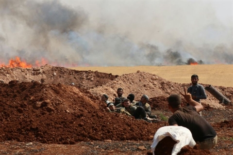 | Des forces rebelles en Syrie au Nord d'Alep, le 26 août. |