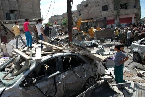 | Inspection du lieu d'une explosion à Homs en Syrie, le 29 avril. |