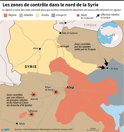 Dans le Nord du pays, le régime a multiplié ces dernières 24 heures des raids aériens contre rebelles et jihadistes, notamment à Atareb et Khan al-Assal, dans la province d'Alep (Nord).
