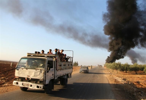 | Des habitants fuient Souran, dans la province syrienne d'Hama, le 1er septembre 2016, après la prise de la ville par le groupe jihadiste Jound al-Aqsa. Photo : AFP/VNA/CVN |