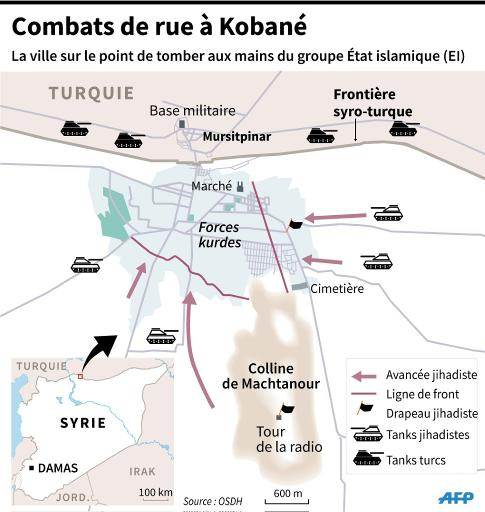 S'ils réussissaient à conquérir entièrement Kobané (Aïn el-Arab en arabe), la troisième ville kurde de Syrie, les jihadistes s'assureraient le contrôle sans discontinuité d'une longue bande de territoire à la frontière syro-turque.