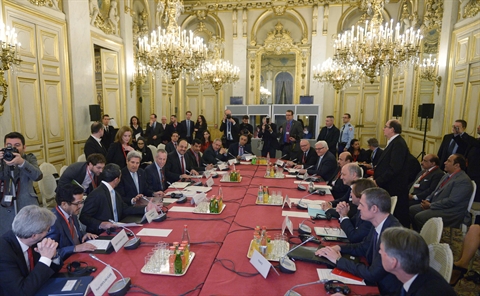 Le chef de la diplomatie française Laurent Fabius a reçu ses homologues américain, britannique, allemand, italien, saoudien, émirati, jordanien, qatari et turc, a indiqué le Quai d'Orsay.