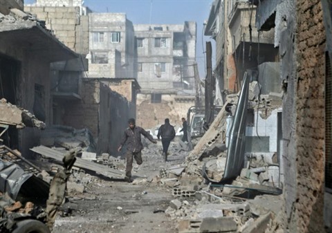 | Un Syrien court à travers les rues de Mesraba, près de Damas, le 27 novembre. |
