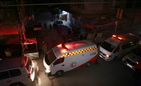 | Des membres de la Croix-Rouge internationale procèdent à une évacuation médicale en urgence, le 26 décembre à Douma, dans la Ghouta orientale, en Syrie. |