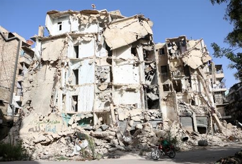 | Des immeubles bombardés à Alep, dans le Nord de la Syrie, le 27 septembre. |