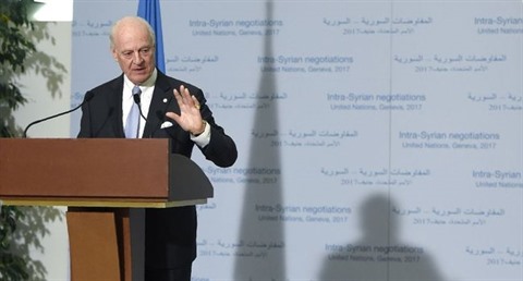 | L'émissaire de l'ONU pour la Syrie, Staffan de Mistura, à Genève, le 3 mars 2017. |