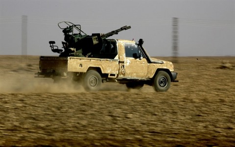 | Un soldat de l'alliance kurde et arabe des Forces démocratiques syriennes, conduisant un véhicule en Syrie, le 12 décembre 2016. |