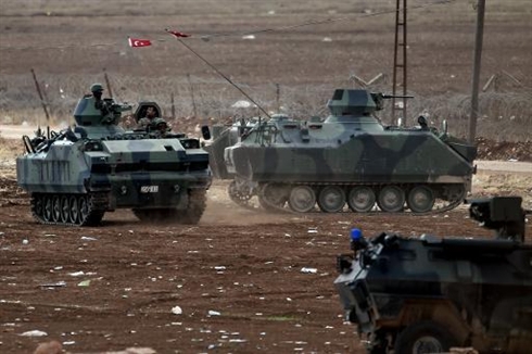 | Des blindés turcs patrouillent le 12 octobre près de Kobané. Photo : AFP/VNA/CVN |
