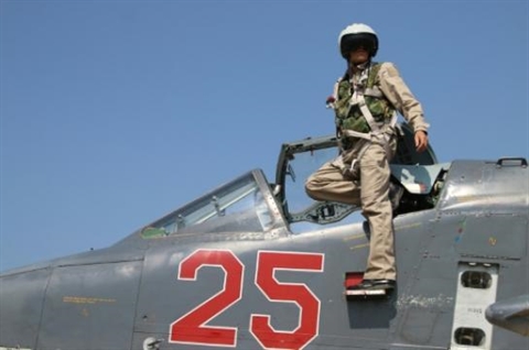 | Un pilote de l'armée russe, le 3 octobre, dans la province syrienne de Latakia. |