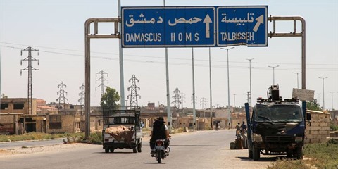 | Une autoroute qui mène à la ville syrienne de Homs (centre), le 3 août 2017. |