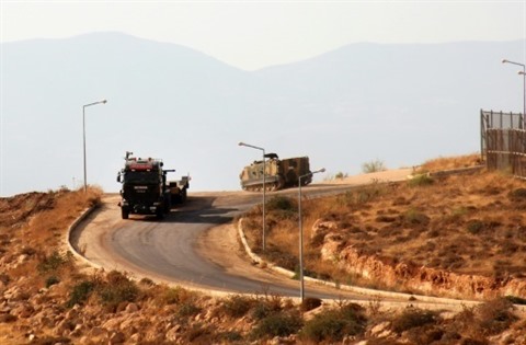 | Des véhicules de l'armée turque photographiés depuis un village de la province syrienne d'Idleb, le 11 octobre |