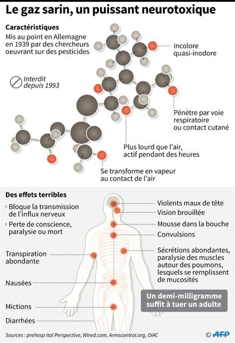 | Caractéristiques et effets du gaz sarin alors que Des experts de l'ONU et de l'OIAC presentent leurs conclusions sur l'attaque chimique au gaz sarin à Khan Cheikoun en Syrie. |