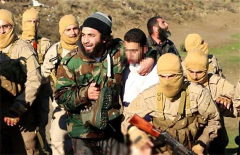Image distribuée par le groupe État islamique aux sites islamistes montrant le pilote jordanien que l'EI a capturé en Syrie le 24 décembre.