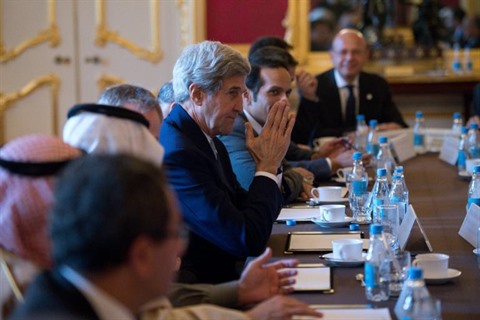 | Le secrétaire d'État américain John Kerry à Londres lors d'une réunion sur la Syrie, le 16 octobre |