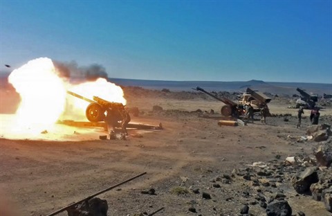 | Photo fournie par l'Agence syrienne Sana le 5 septembre 2018 de l'artillerie syrienne tirant sur des positions du groupe État islamique dans la province de Soueida. Photo: AFP/VNA/CVN |