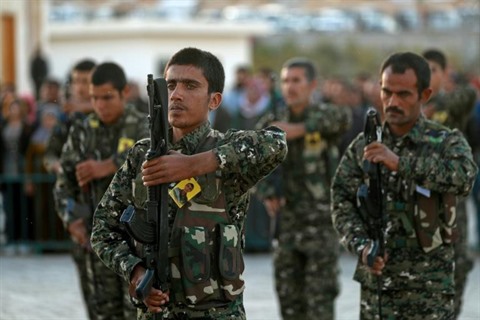 Photo prise à Kobané (Nord de la Syrie) le 6 novembre de combattants des Forces démocratiques syriennes (FDS) assistant aux obsèques d'un des leurs, tué dans une offensive de jihadistes contre une de leurs positions près de Deir Ezzor (Est). Photo: AFP/VNA/CVN |
