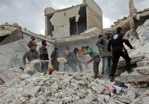 | Des habitants recherchent des victimes dans les décombres des immeubles, le 16 novembre à Idleb, en Syrie. |