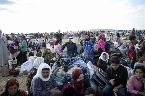 Selon un photographe de l'AFP, des cohortes de milliers de personnes contraintes à la fuite, dont un grand nombre de femmes, d'enfants et de vieillards chargés de sacs et de valises se sont pressées tout au long de la journée de samedi aux alentours du poste-frontière de Mursitpinar (Sud de la Turquie).