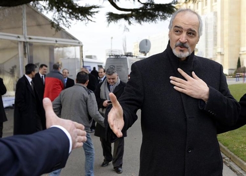 | Le chef négociateur du gouvernement syrien, Bachar al-Jaafari, représentant permanent de la Syrie à l'ONU, à son arrivée samedi 25 janvier à l'ONU à Genève pour discuter avec l'opposition. |