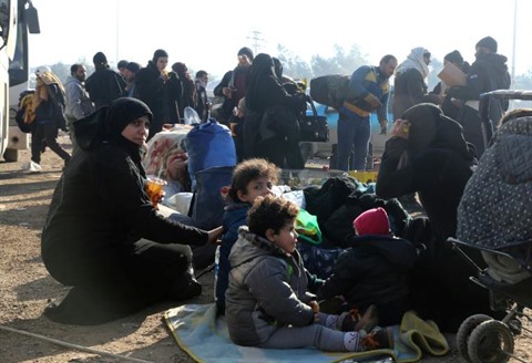 | Des familles syriennes en attente d'être évacuées, le 20 décembre à Alep |