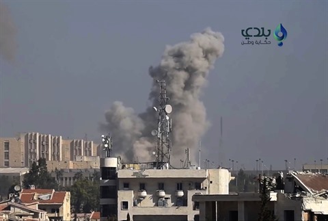 Des colonnes de fumée noire s'élevaient au dessus du quartier de Dahyet al-Assad, où les opposants ont mis le feu à des pneus pour gêner la visibilité des avions de combat, a constaté un journaliste de l'AFP.