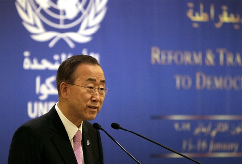 "Aujourd'hui, je m'adresse à nouveau au président syrien Bachar al-Assad, et je lui répète : arrêtez la violence. Arrêtez de tuer vos citoyens. La répression est un chemin qui ne mène nulle part", a déclaré M. Ban au cours d'une conférence sur la transition démocratique du monde arabe. Cette conférence était organisée par la Commission économique et sociale des Nations unies pour l'Asie de l'Ouest, et se tenait à Beyrouth, la capitale du Liban.