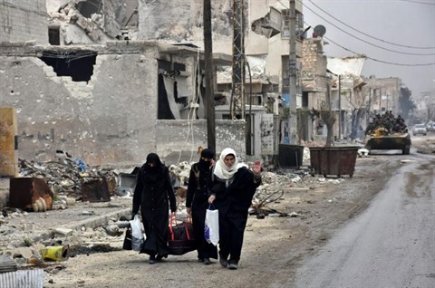 | Des habitants fuient Alep-est, en Syrie, le 30 novembre. |