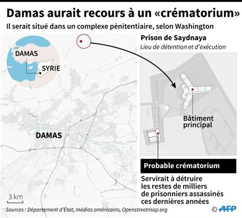 Ces allégations relaient un rapport, photos satellites à l'appui, qu'avait publié en février Amnesty International. L'organisation de défense des droits de l'homme accusait le régime d'avoir pendu 13.000 personnes entre 2011 et 2015 dans cette prison de Saydnaya et dénonçait une "politique d'extermination" constituant des "crimes de guerre et crimes contre l'humanité".