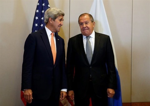| Le secrétaire d'État américain John Kerry (gauche) et son homologue russe Sergei Lavrov, le 9 septembre |