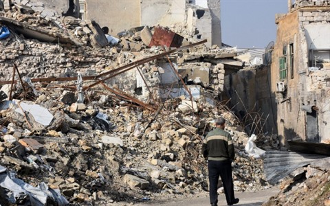 Un Syrien au milieu d'un quartier détruit, le 19 janvier à Alep. Photo : AFP/VNA/CVN |