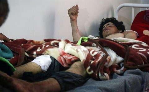 | Un homme blessé sur un lit d'hôpital à Hassaké, le 2 mai en Syrie. |