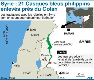 Sur leur page Facebook, les rebelles de la "brigade des martyrs de Yarmouk" affirment avoir pris ces casques bleus au moment où des violents combats se déroulent dans la région, lors d'une "opération pour (les) protéger" des bombardements et des combats.