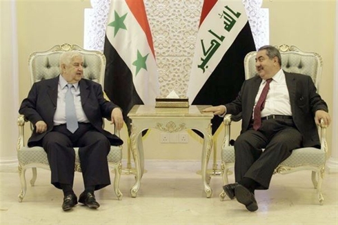 | Le ministre syrien des Affaires étrangères, Walid Mouallem (gauche), et son homologue irakien |