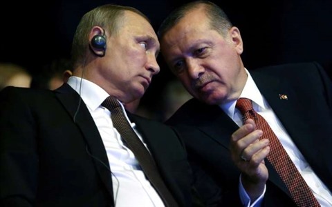 Les présidents russe, Vladimir Poutine (gauche), et turc, Recep Tayyip Erdogan, le 10 octobre à Istanbul. Photo : AFP/VNA/CVN |