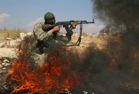 | Un opposant syrien, combattant au sein du Front national de libération lors d'un entraînement militaire à Idleb, le 11 septembre. |