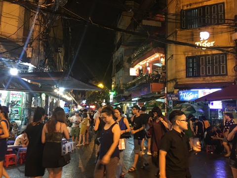 Chaque samedi soir, le Vieux quartier de Hanoï connait son pic d’affluence. Il est difficile de se frayer un chemin, même pour les piétons. Des milliers de jeunes en goguette arpentent les rues à la recherche de buvettes ou de gargotes où passer une bonne soirée. Ta Hiên, la bien nommée « rue des Tây » (Tây = Occidentaux) eu égard à sa concentration de touristes étrangers, est l’une des plus fréquentées.