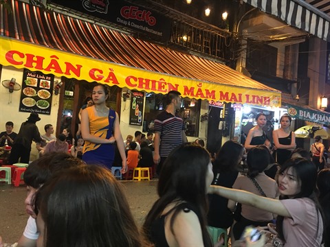 | Beaucoup de jeunes viennent dans la rue Ta Hiên pour profiter de l’animation. Un vrai spectacle, unique dans la capitale. |