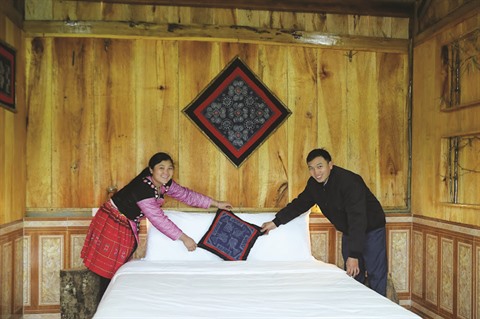 Depuis quelques temps, les locaux s’orientent vers le tourisme communautaire en favorisant le mode de séjour chez l’habitant (homestay). Jusqu’à maintenant, une dizaine de familles se sont lancées dans ce type de logement. Aussi, le couple Sùng Y Hoa et Mùa A Hang a décidé de remettre en état sa demeure pour accueillir des voyageurs. "Nous avons procédé aux travaux de rénovation de notre maison en 2021, pendant la pandémie de COVID-19. Ce fut alors difficile au début à cause des restrictions de déplacement qui ont entravé le transport des matériaux. Nous voudrions surtout que notre logement conserve les couleurs et les particularités de notre ethnie, et qu’il dispose malgré tout de suffisamment d’équipements pour accueillir même les touristes les plus exigeants", précise Sùng Y Hoa.