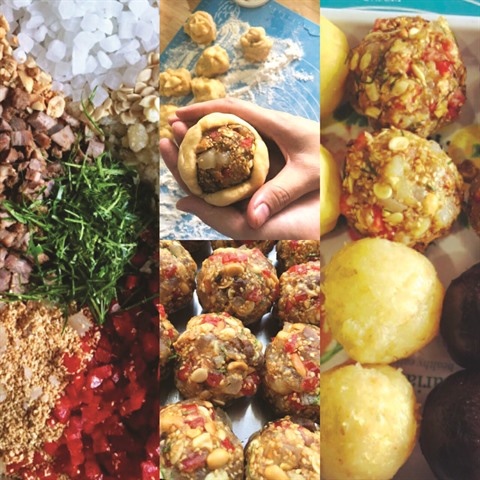 Après avoir bien mélangé la garniture, Oanh commence à pétrir la farine. D’après elle, c’est la phase la plus difficile dans la préparation d’un banh deo. Il faut bien doser la quantité de farine à mélanger avec l’eau pour que la farine soit très fine. Pour les banh nuong, le plus difficile est de chauffer l’eau sucrée. Si le feu est trop fort, l’eau sucrée devient trouble, et le goût des gâteaux s’en ressent. "Cette expérience, c’est le fruit de pas mal d’échecs", partage-t-elle. Les banh nuong doivent être mis au four à trois reprises, environ dix minutes chaque fois. À côté des banh nuong et banh deo aux formes "conventionnelles", elle en fabrique aussi d’autres ressemblant à des cochons pour son fils et ses copains.