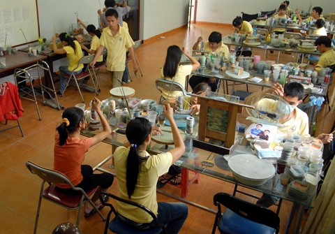 | Dans un atelier de production de la société Tranh cát Phi Long, à Binh Thuân (Centre). |