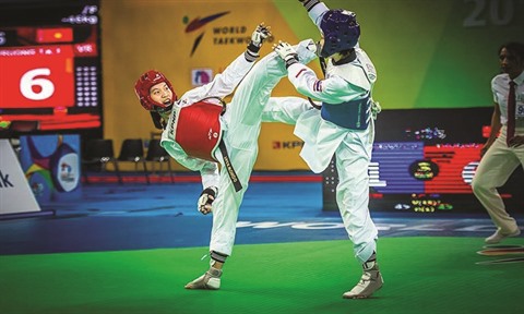 | Kim Tuyên (gauche) souhaite marcher sur les pas de la taekwondoïste Trân Hiêu Ngân, médaillée d’argent aux JO de Sydney, en 2000. |