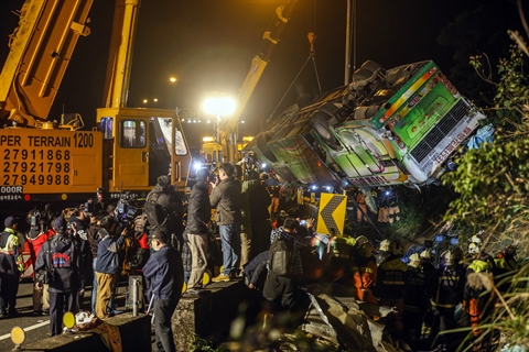| Sur le lieu de l'accident survenu le soir du 13 février dans la région de Taichung. |