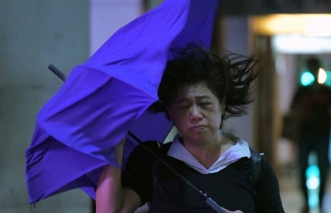 | Un vent violent à Keelung, à Taïwan (Chine) à l'approche du typhon Maria, le 10 juillet. |