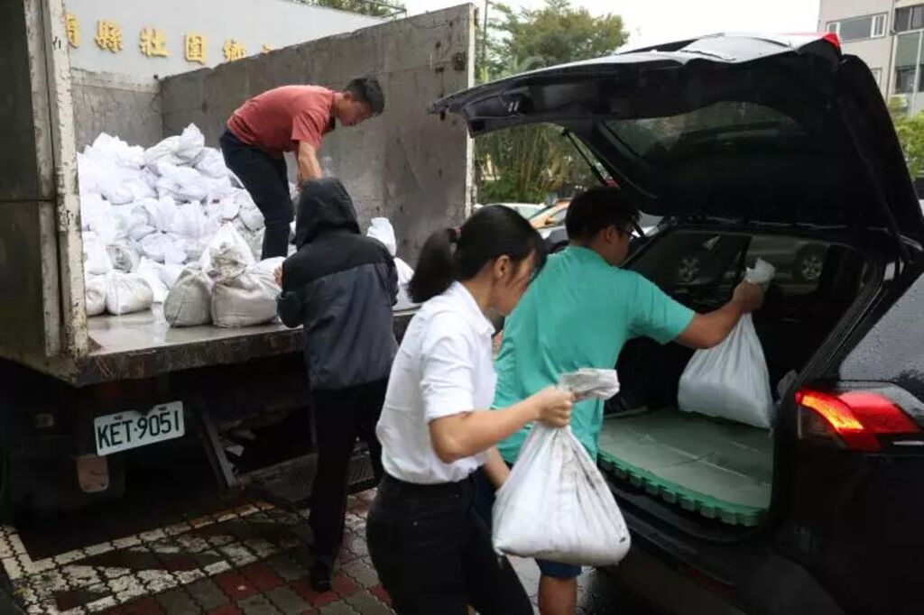 | Des personnes chargent des sacs de sable alors que le typhon Kong-rey s'approche de Taïwan (Chine), à Yilan, le 30 octobre. |