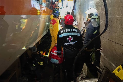 | Photo diffusée le 2 avril par la Croix rouge taïwanaise de sauveteurs évacuant des passagers d'un train qui a déraillé dans un tunnel, dans le comté de Hualien, dans l'est de Taïwan (Chine). Photo : AFP/VNA/CVN |