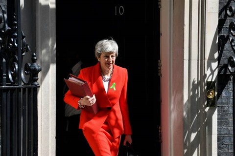 | Theresa May sort du 10 Downing Street, le 15 mai à Londres. |