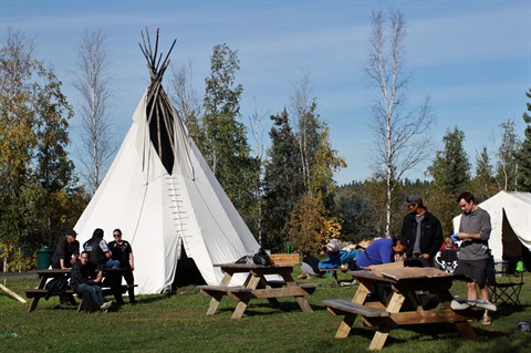 Sous le tipi, un homme accroche des poissons pour les cuire au feu de bois, avant de nourrir les visiteurs. Deux femmes s’acharnent sur une peau de caribou mal dégrossie, qui servira à vêtir les plus démunis. Les uns et les autres honorent la loi des anciens : «Aidez les autres» et «Partagez ce que vous avez».