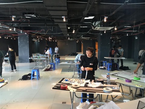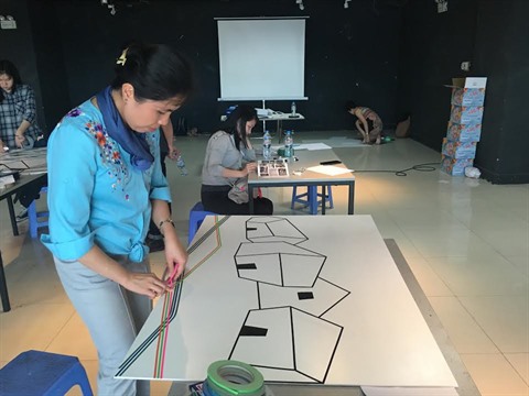 | Un atelier de «tape art» au Centre de loisirs Hanoi Creativity City, le 12 décembre. |