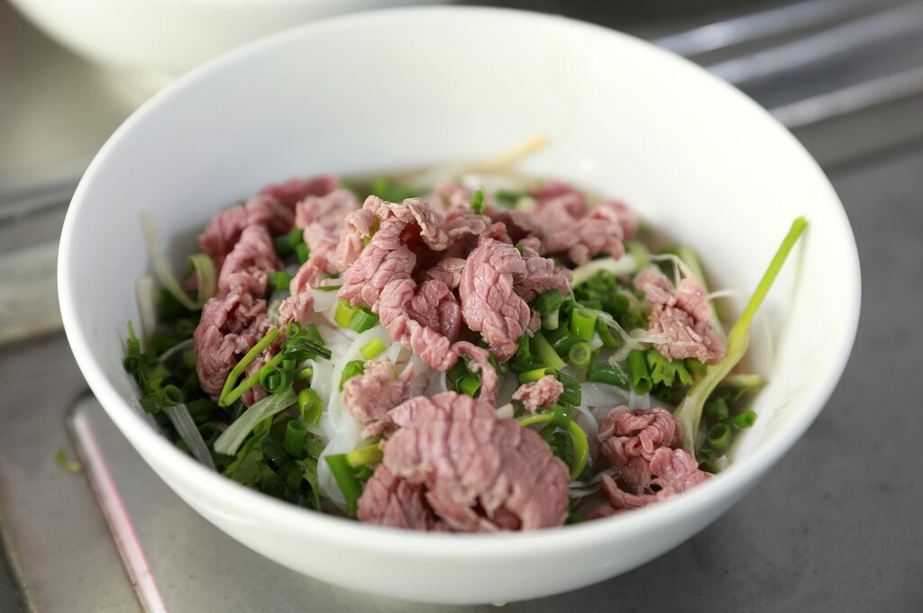Le pho au bœuf est généralement parfumé d’épices séchées comme la cannelle, l’anis étoilé, le clou de girofle, la cardamome et la coriandre. Servi bien chaud dans un bol, il est accompagné de nouilles de riz et est généralement garni de coriandre, d’oignons émincés et d’oignons verts hachés.