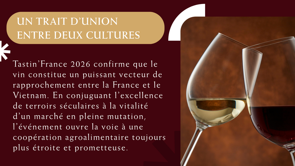 Pour le consommateur vietnamien, déguster un vin français dépasse le simple acte de consommation : il s’agit d’une véritable immersion culturelle. Comme le souligne l’ambassadeur Olivier Brochet, "la gastronomie et les vins sont une façon de voyager sans prendre l’avion".